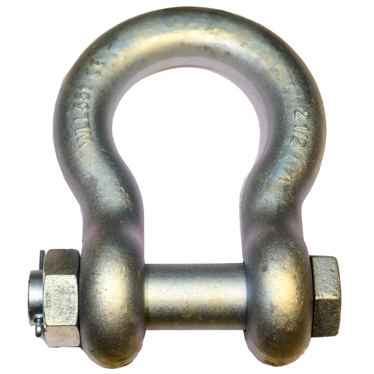 A heavy‑duty shackle with a wide bow and secure nut‑bolt fastening, designed for safe and versatile lifting, hoisting, and rigging operations.