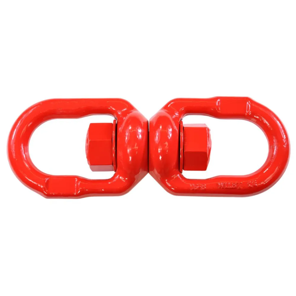 A Grade 80 alloy steel swivel for secure lifting, designed to prevent rope and chain twisting.